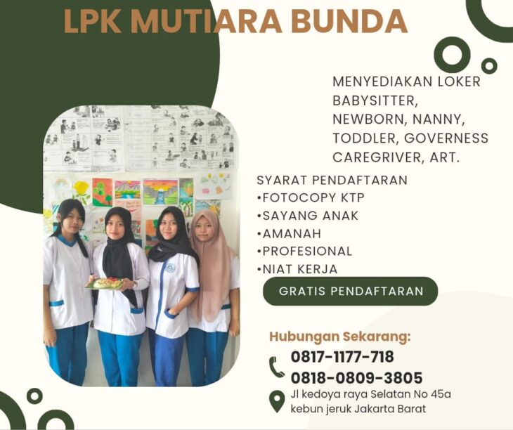 Bersama Yayasan Mutiara Bunda Cabang Semarang 082145600850 Apakah Anda memiliki hati penyayang terhadap anak-anak, sabar, dan ingin memiliki pekerjaan yang penuh makna? Kini telah dibuka lowongan pekerjaan sebagai babysitter profesional […]